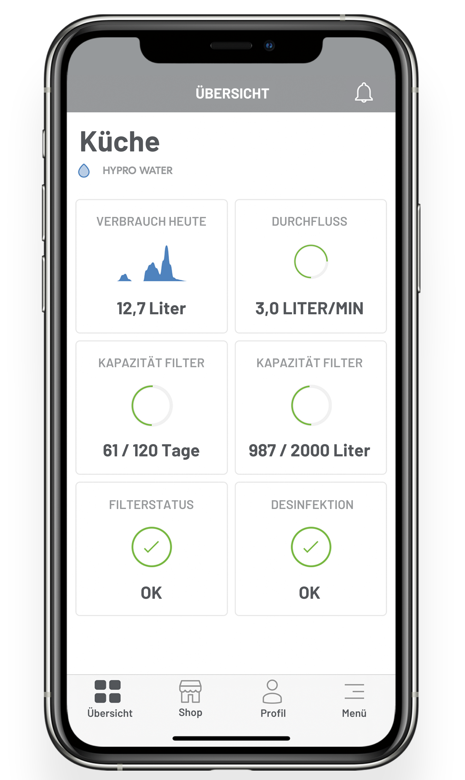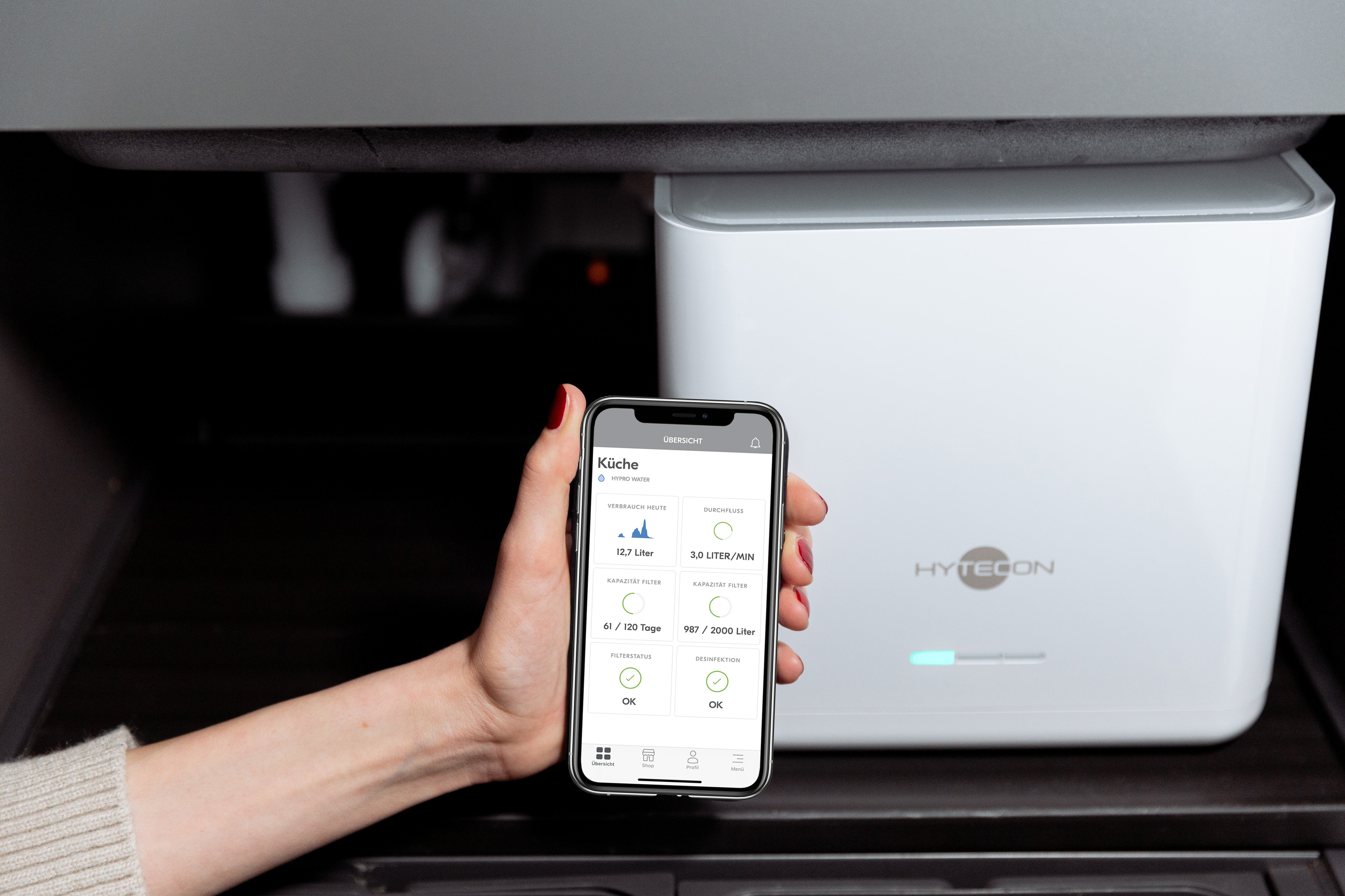 Mit dem HYPRO WATER hast Du kaum Wartungsaufwand. Lediglich der Aktivkohleflter sollte alle 4 Monate bzw. 2.000 Liter getauscht werden. Die HYPRO App und eine blinkende LED am Gerät weisen Dich rechtzeitig auf den notwendigen Filterwechsel hin.