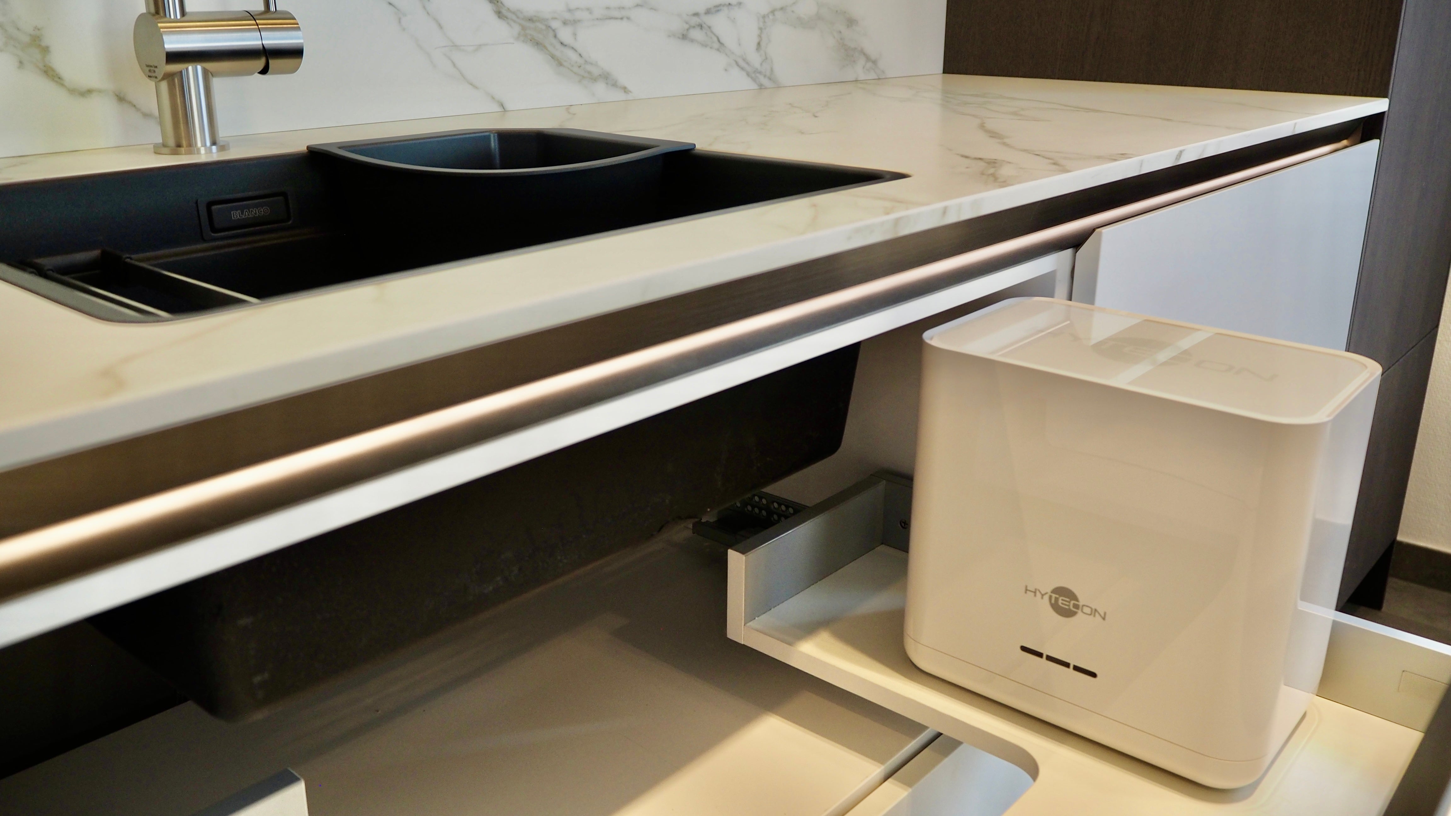 Gerade in hochwertigen, maßgeschneiderten Küchen zählt jeder Zentimeter. HYPRO WATER verschwindet dezent unter der Spüle und beansprucht kaum Raum. Für das Team von Patt ist das ein entscheidender Vorteil – denn das System lässt sich in nahezu jedes Küchenkonzept integrieren, ohne Stauraum zu verlieren.