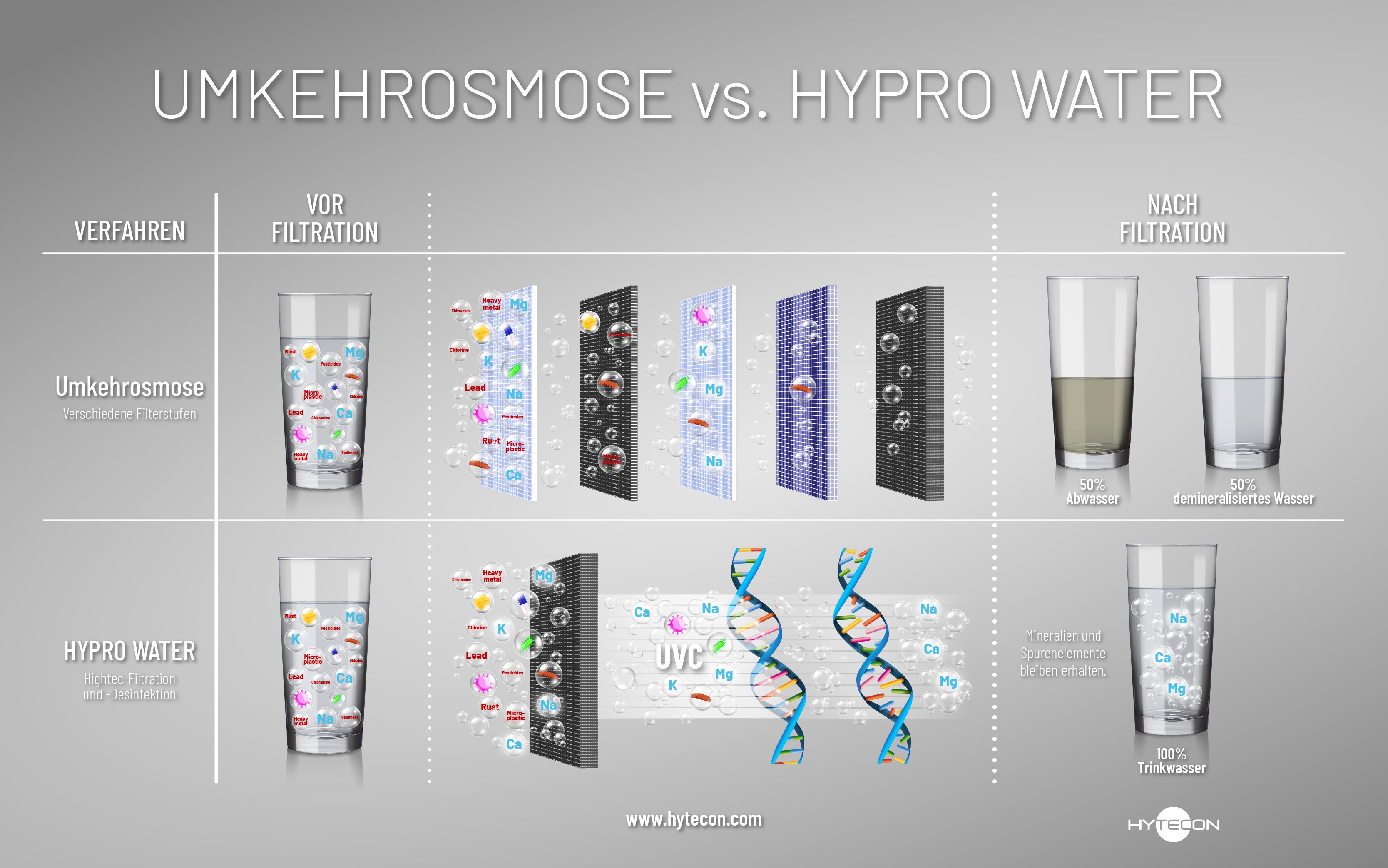 Du möchtest wissen, warum der HYPRO WATER eine bessere Alternative zur klassischen Umkehrosmose ist?