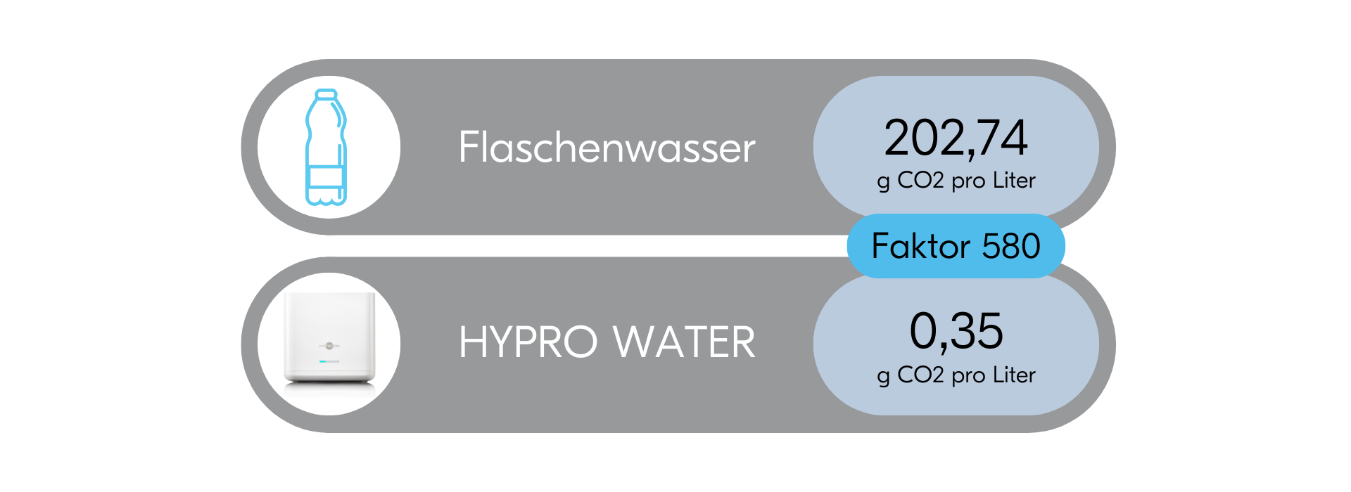 - 580x geringerer CO2-Fußabdruck als Flaschenwasser